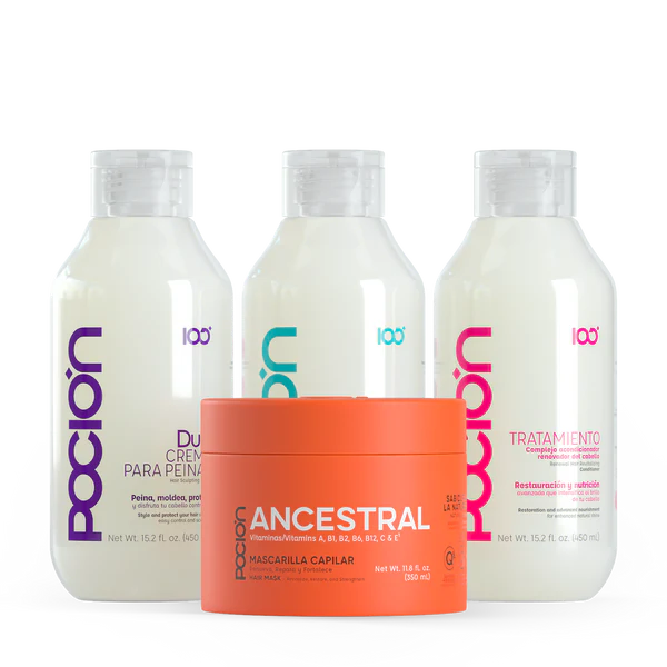 El uso continuo de nuestro Kit Poción ayudará al sano crecimiento y prevención de la caída del cabello.